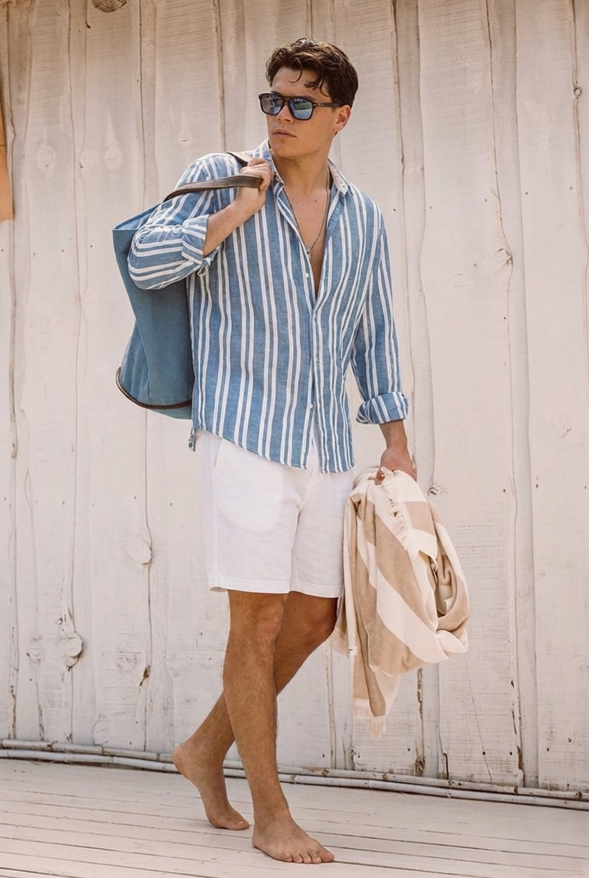 Si buscás una camisa rayada de lino para verano, esta es la prenda que levanta cualquier outfit.